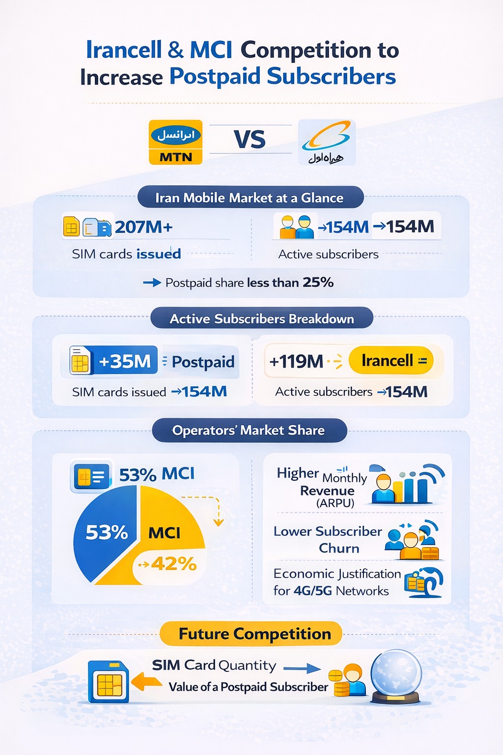 ARPU سیمکارت CAPEX اپراتورها churn rate اپراتور استراتژی اپراتورهای موبایل افزایش ARPU بازار B2B اپراتورها تحلیل بازار موبایل ایران تحلیل تخصصی اپراتورهای تلفن همراه تحلیل رفتار مصرفکننده موبایل تحلیل مالی اپراتورهای ایرانی تعرفه موبایل ایران تفاوت سیمکارت اعتباری و دائمی خدمات سازمانی موبایل دادههای بازار موبایل ایران درآمد اپراتورهای موبایل درآمد متوسط هر کاربر رقابت اپراتورها رقابت در بازار ارتباطات سئو اپراتور موبایل ساختار بازار ارتباطات سیار سرمایهگذاری شبکه موبایل سهم بازار ایرانسل سهم بازار همراه اول سیمکارت دائمی کلیدواژه هوش مصنوعی مخابرات گزارش CRA گزارش ایرانسل گزارش همراه اول مدل درآمدی اپراتورها مشترک ارزشمند موبایل مشترکین دائمی ایرانسل مشترکین دائمی همراه اول مهاجرت به سیمکارت دائمی وفاداری مشتری موبایل